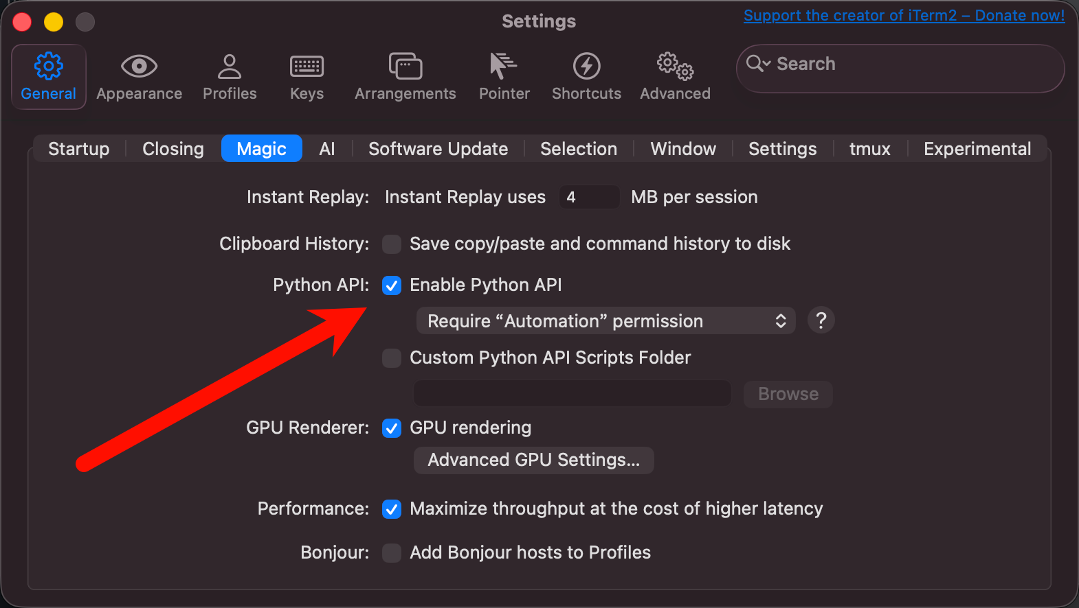 随便说一句,要想实现分屏需要开始 iterm2 的一个 Python api 设置