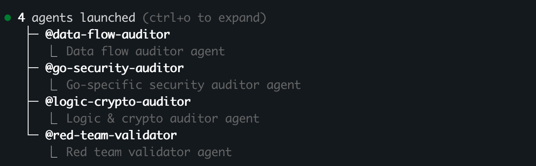 Agent Teams 的关键在于上下文隔离:负责看密码学的 Agent 它的脑子里只有 crypto 相关的代码和上下文,负责看入口的 Agent 只有 Router 的上下文。这极大地提高了每个“专精节点”的漏洞发现精确度